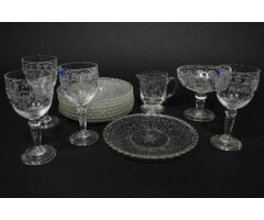 | 8 LAUTASTA 16 CM, 4 VIINILASIA, SOKERIKKO JA KERMAKKO APILA |